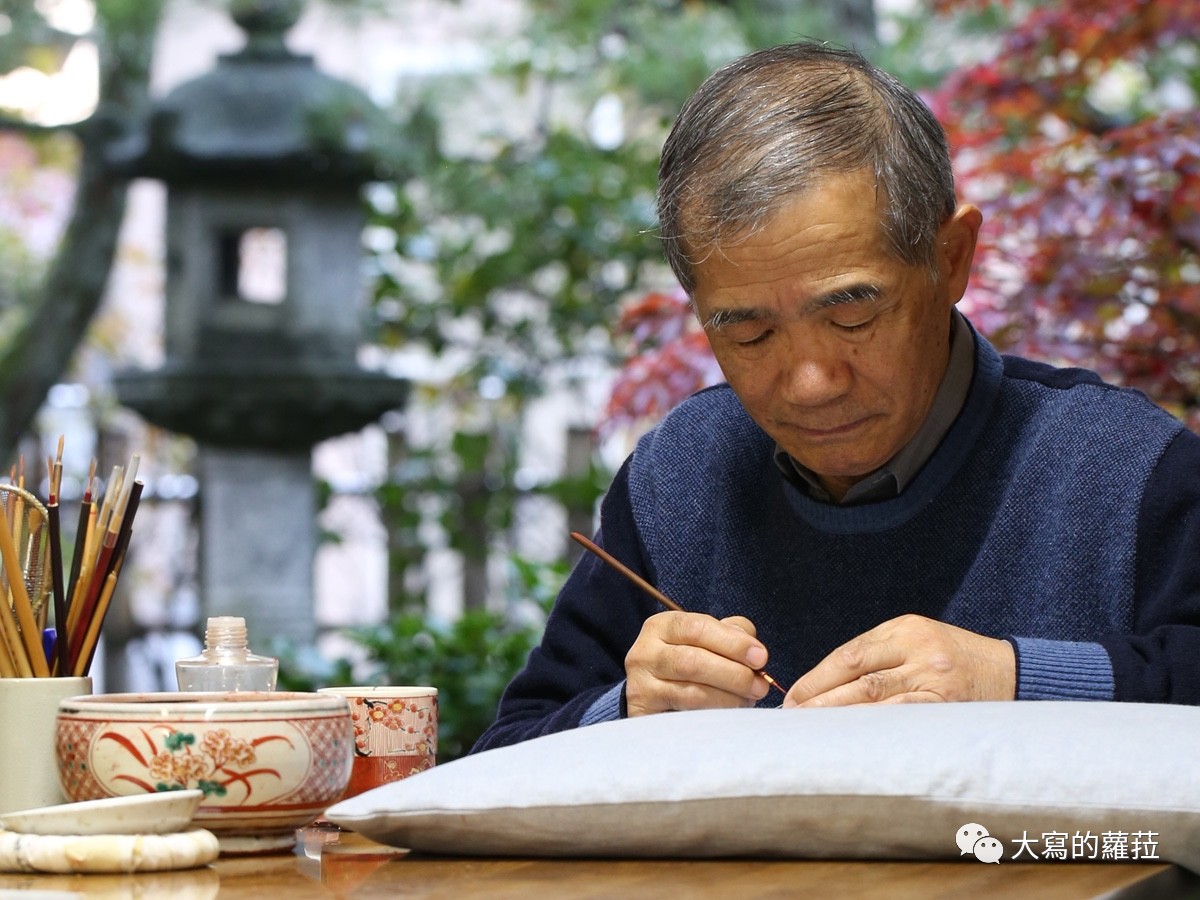 △福岛武山先生坚持传统手工的赤绘技巧其实完全自学而成。