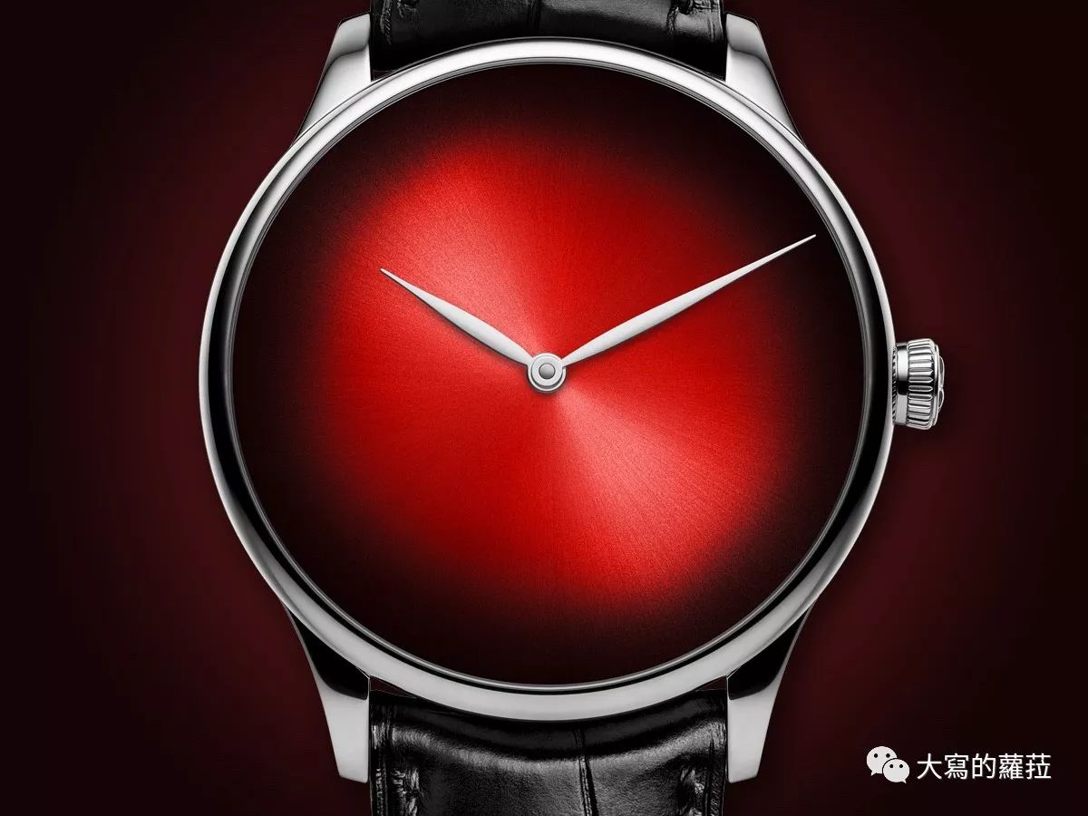 △亨利慕时为第七届Only Watch慈善拍卖制作的Venturer Concept孤品拥有独特的红色fumé烟熏表盘。