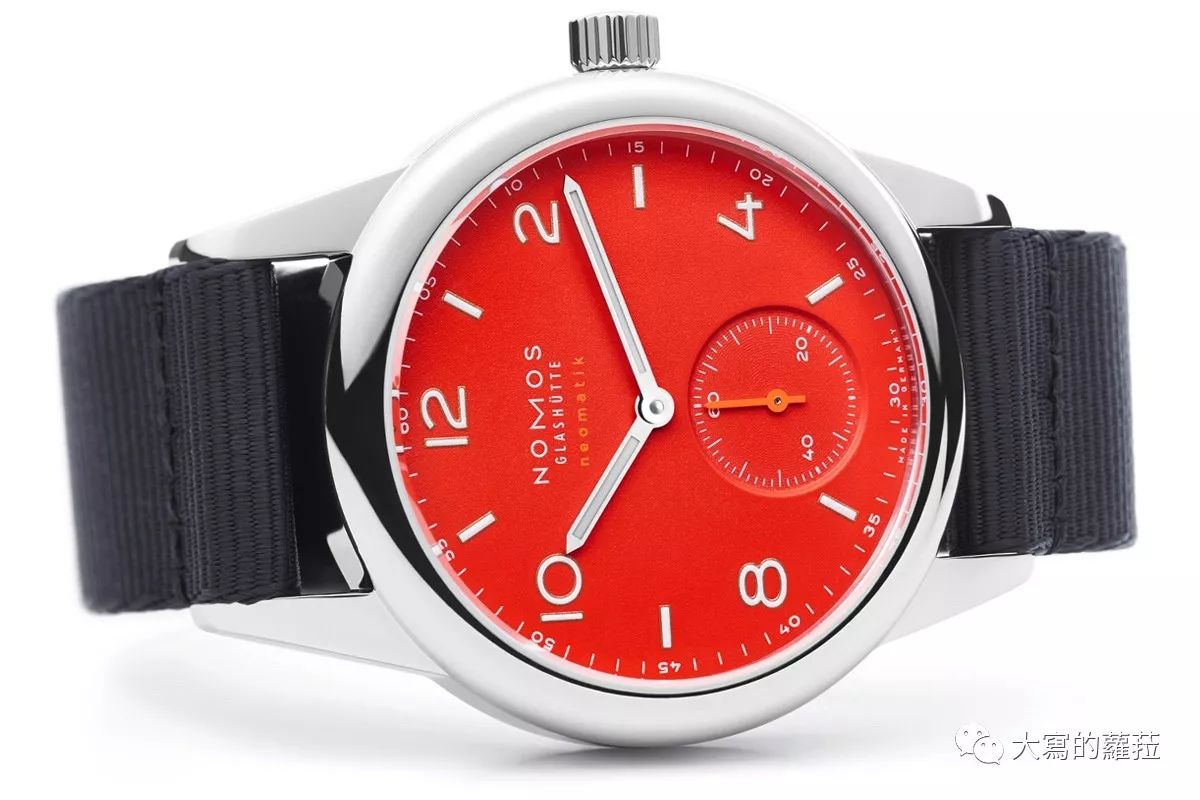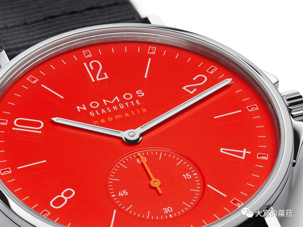 △Nomos全新的Ahoi neomatik signalrot款的面盘橙红艳亮,我认为更适合称做“朱槿红”。