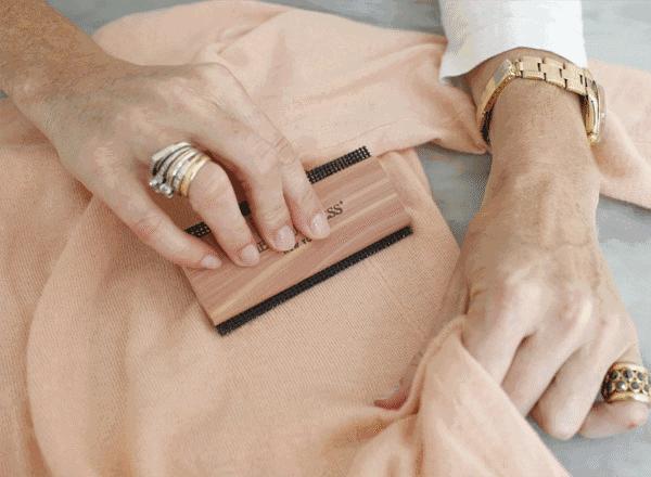 不同于毛衣石,这把梳子更适用于轻质细腻的羊绒和羊毛织物。