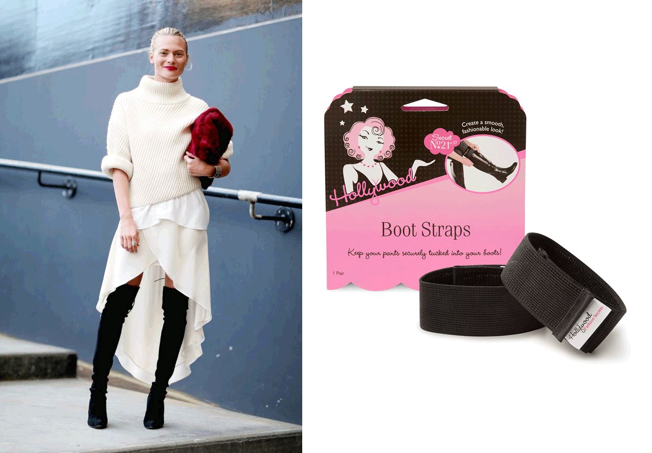 ▲右图:boot strap,其实很好DIY,拿一个2.5cm宽的松紧带就能做。