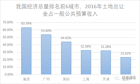 杠杆游戏通过查阅相关预决算数据发现,2016年,我国经济总量前6的城市中,卖地收入占一般公共预算收入最低的是北京,仅为23.02%。天津、上海分别30%出头。
