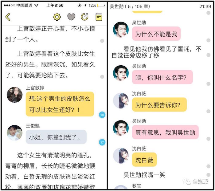 除了虚拟人物“撩”功了得,也有受众享受与现实人物的虚拟联系。深得“撩”功大法的“话本”APP,就在一众清新的阅读应用中异军突起。打开“话本”,《凯少,请你放过我》、《EXO之十二队员扑倒我》等以当红明星为主角的小说强势占领阅读榜,各种撩人情节在真实人物的助攻下,更让人脸红心跳。