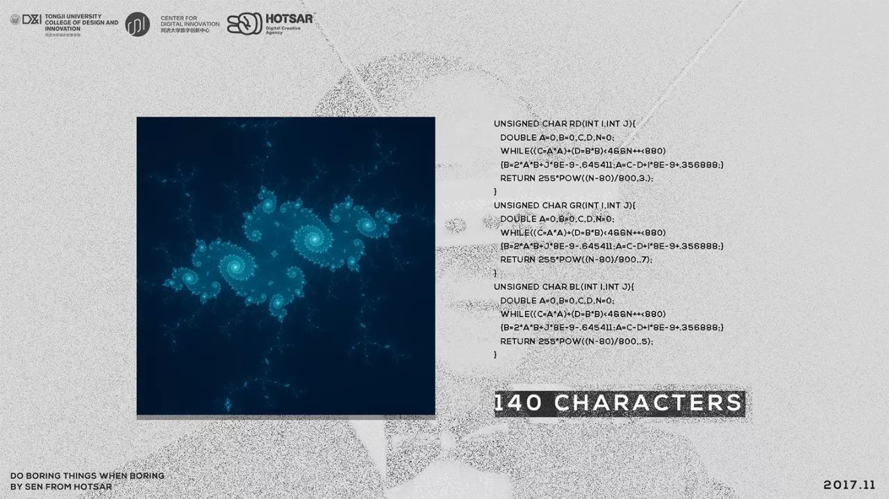 140个字符的大小有多大你们可能不太清楚,大概只有不到47个像素的数据量。这么小数据量的代码,要去生成一张可以无限分辨率的图像,这是一件很有挑战性的任务,于是很多程序员开始跃跃欲试。