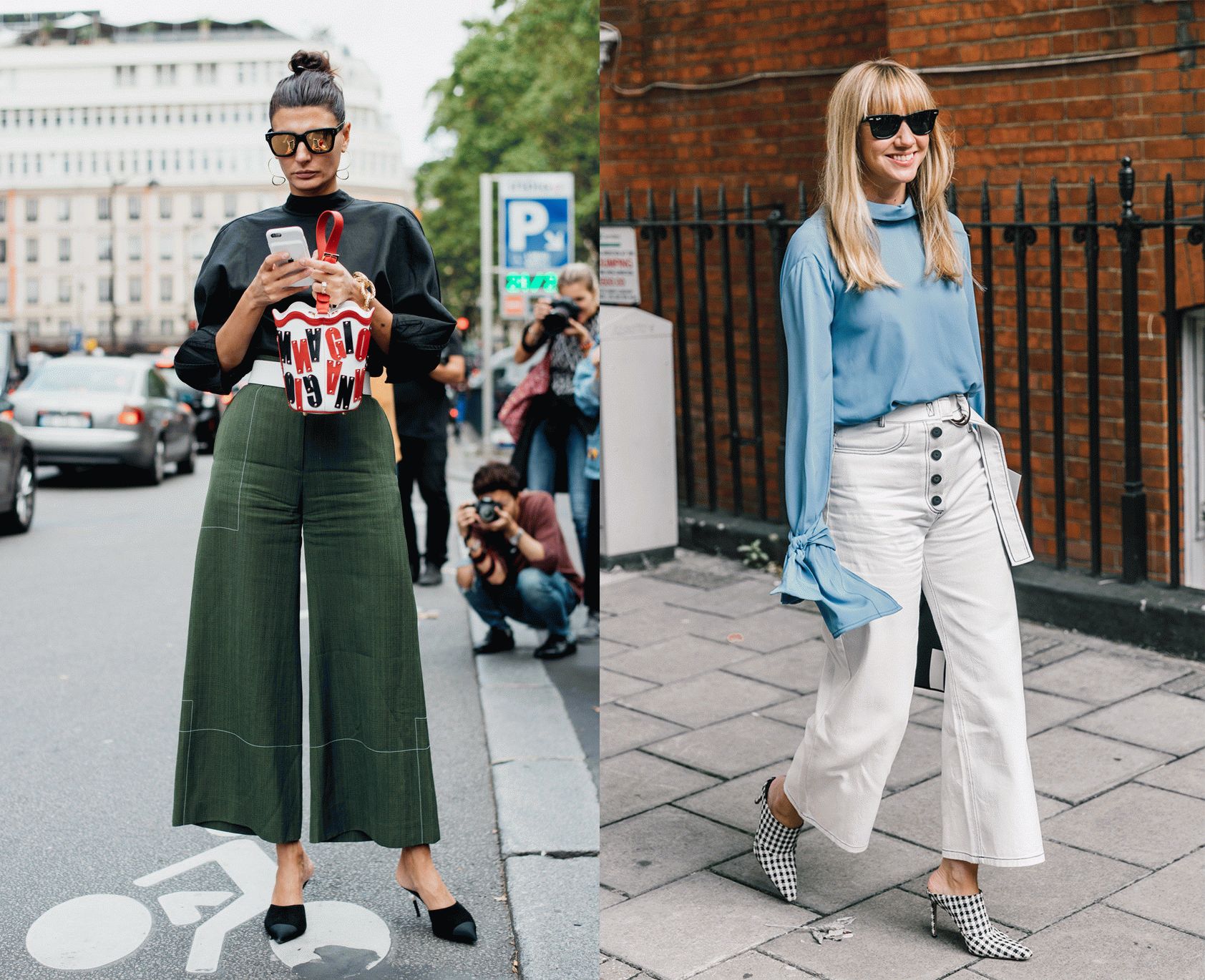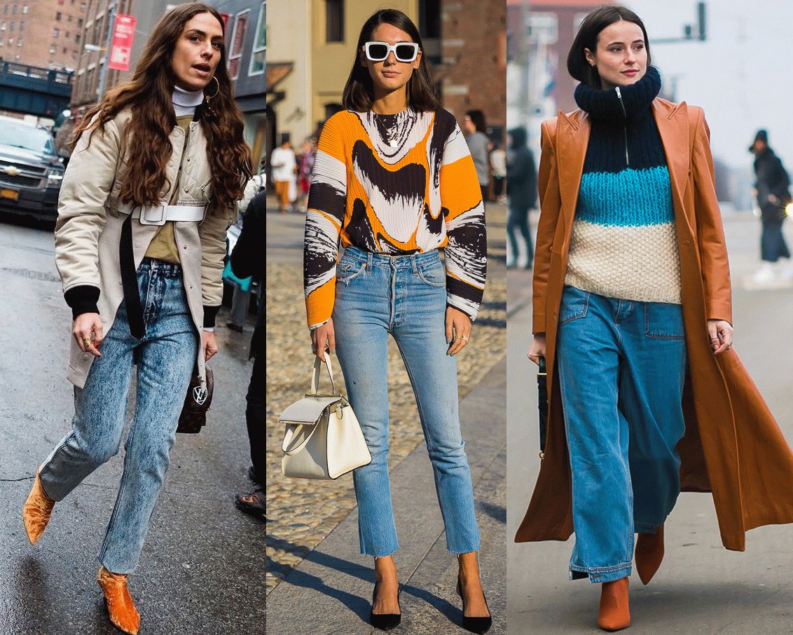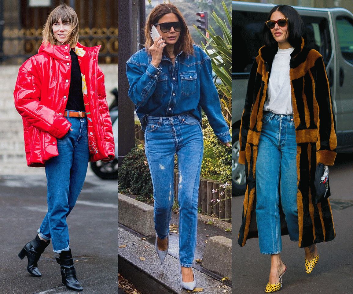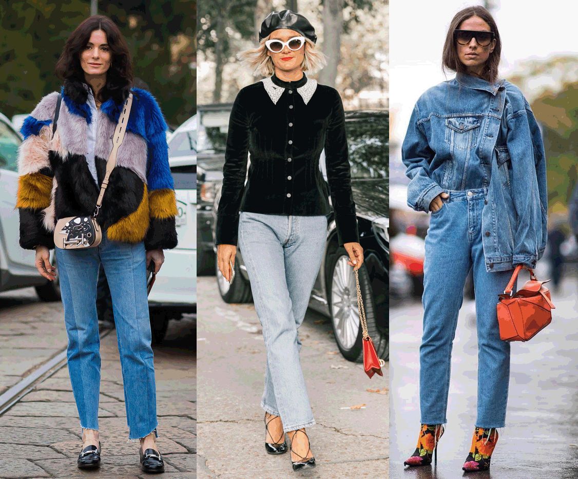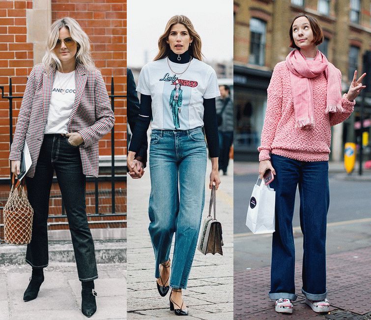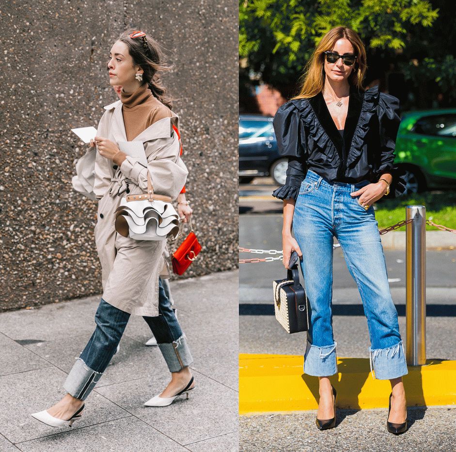 另外还有16年那会儿流行过这样把直筒牛仔裤裤脚卷的老高的穿法,今年依旧有时装精们在这样穿。但是,这一招非常不适合小腿粗的妹子们!