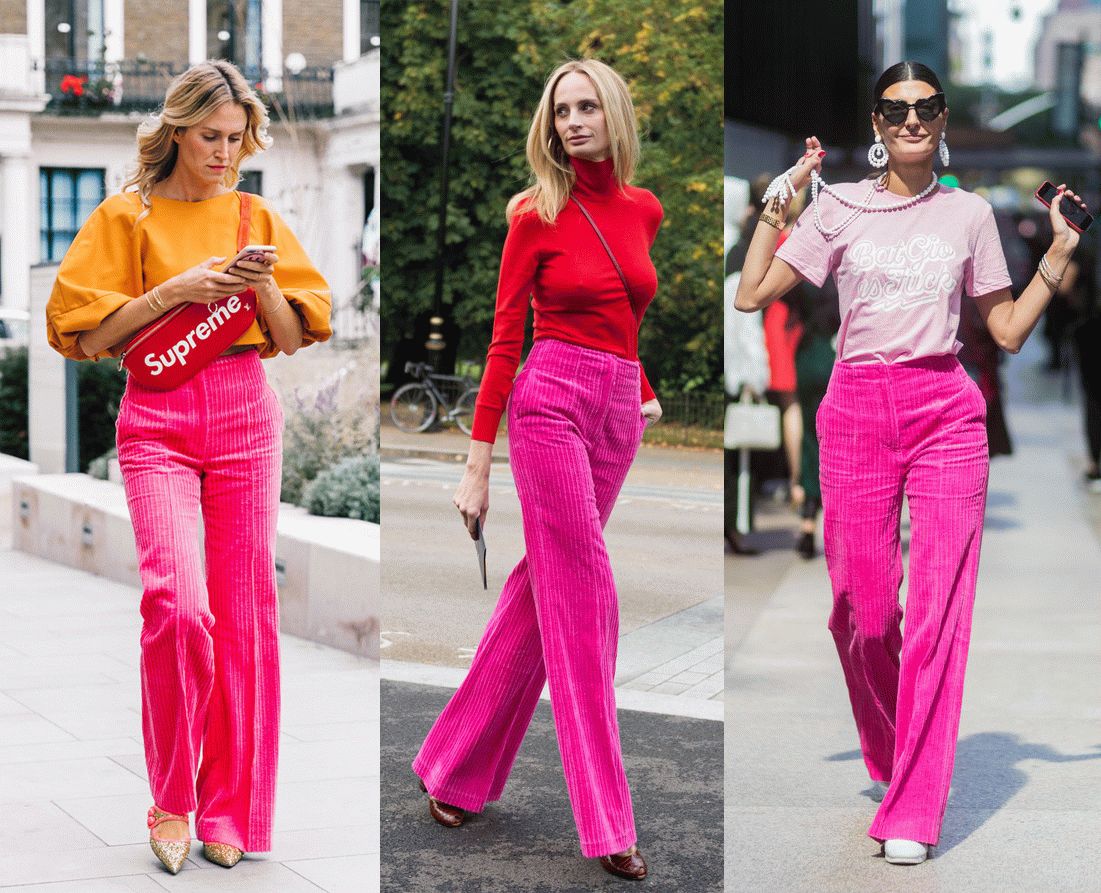 最近这两年复古风刮的厉害,连着把灯芯绒都给刮回来了。在风格上,灯芯绒就是主打着复古的休闲味。之前Celine出的那款玫红色灯芯绒阔腿裤,被咖儿们穿了一遍又一遍。