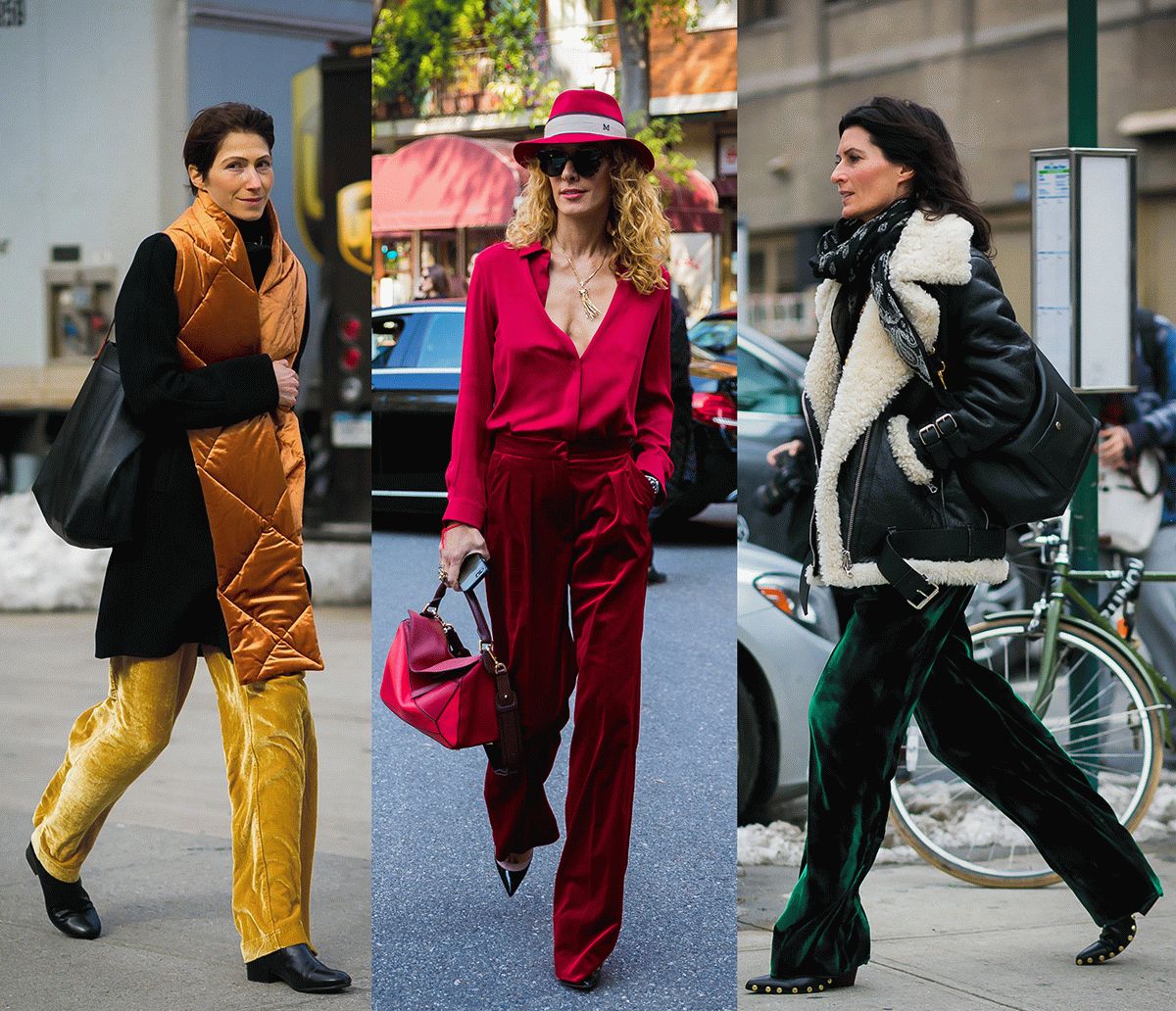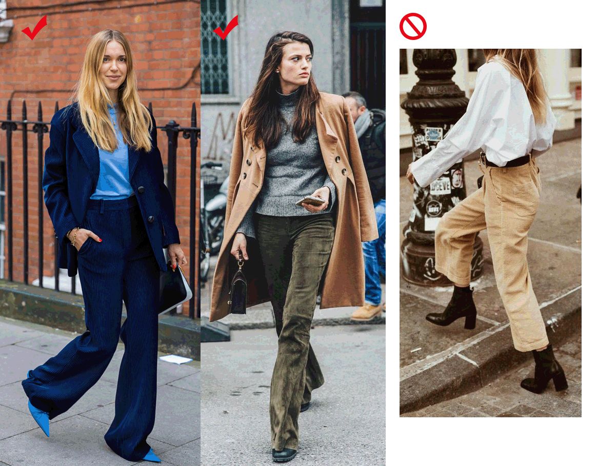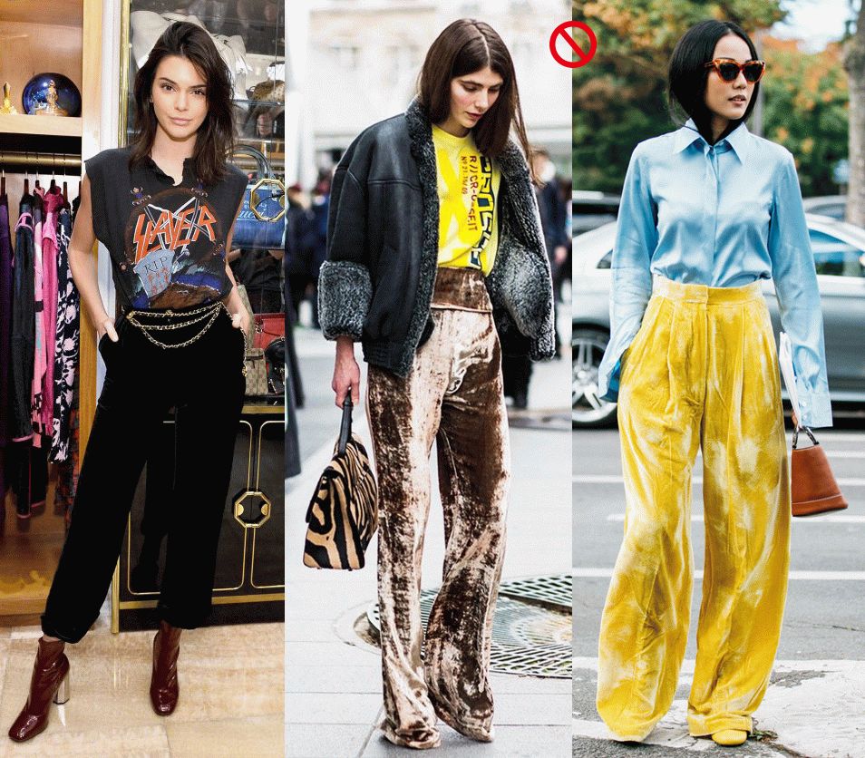 黑色的阔腿丝绒裤才是你的安全牌。当然,你若是超级完美的小细腿,颜色啊、版型啊这些你都没在怕的,随便挑就是啦。