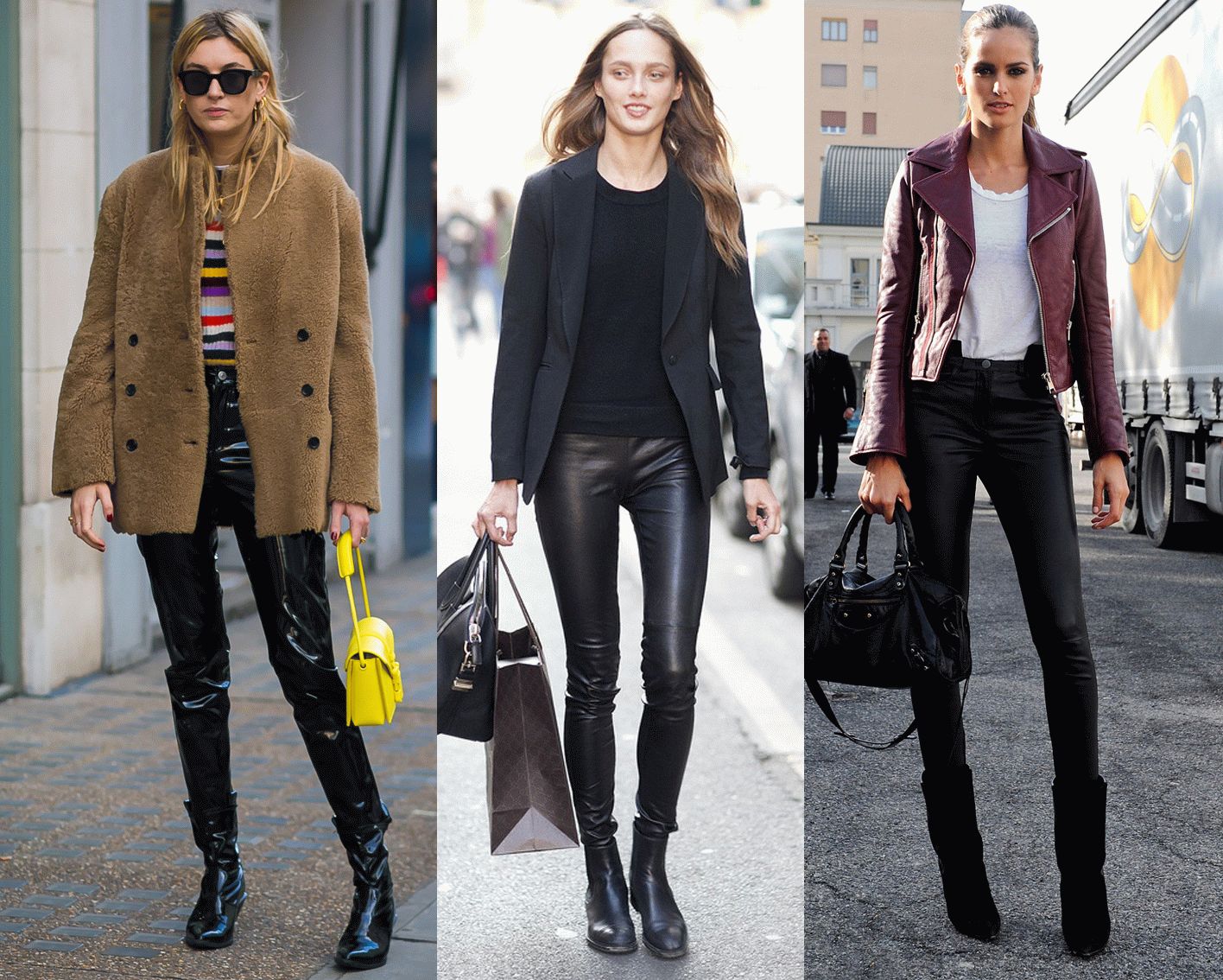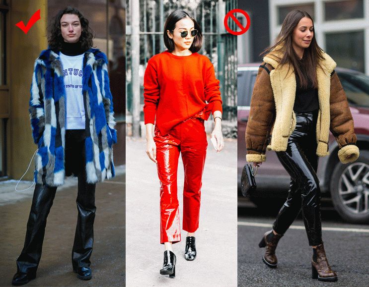 另外关于皮裤还有很关键的一点就是材质。任何腿粗、腿不直的姑娘,咱们都优先选择亚光皮好吗!那种漆皮什么的,真的,就留给超模腿好了。还有那些奇怪的颜色,它们很吸睛没错,但真的太挑人了!咱们…没必要的~~