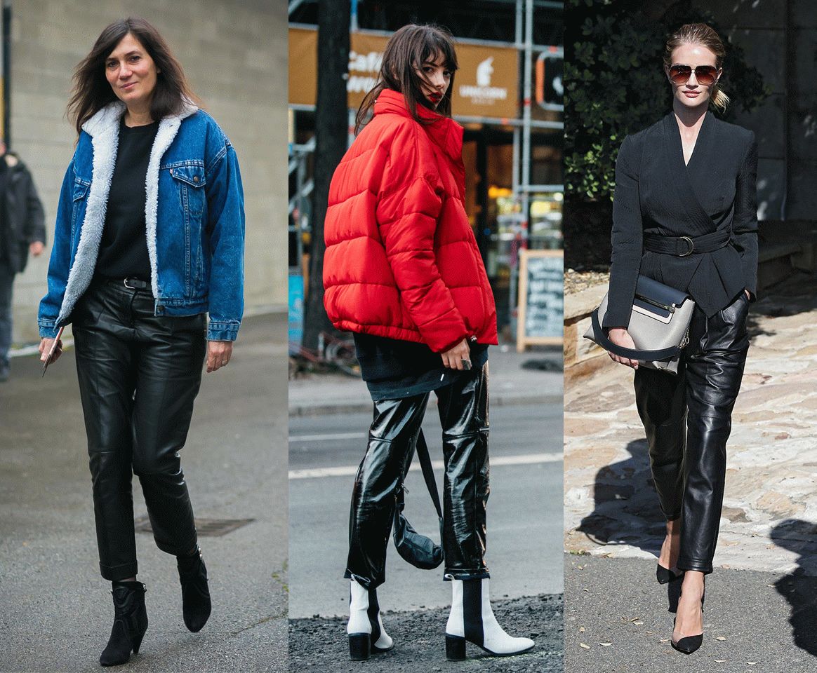 皮裤想来也是大家绝对不会陌生的一款。皮革带有浓烈的摇滚、帅气感,还兼合着一丝女人味,街拍中的各路博主、模特,都是皮裤的狂热饭。
