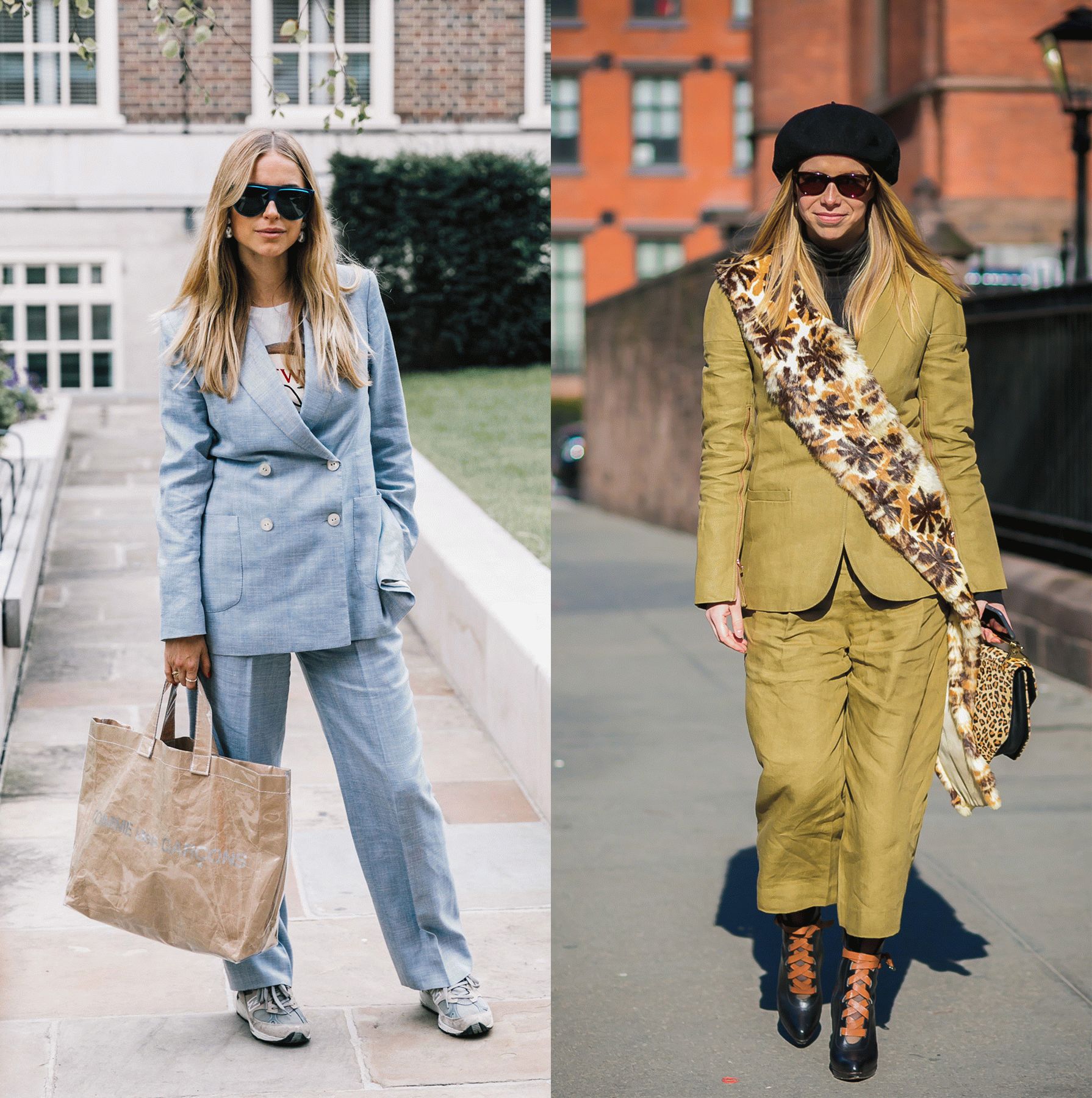 建议大家搭配一些更精致的单品去中和,比如带跟的鞋子、柔软的针织衫或者质感高级的西装等。