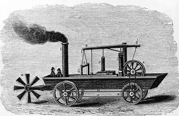水陆两用车的发展可追溯上百年的历史,有资料记载第一辆水陆两栖车由美国人Oliver Evans于1805年发明。为了能在水中行驶,Oliver Evans在车上装了轴和桨轮,用发动机飞轮轴的皮带和皮带轮来驱动桨轮。更准确的描述,Oliver Evans的发明应该称为是“一辆使用蒸汽动力的装有轮子的船”。