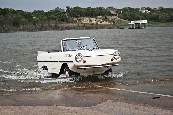 1961年,Trippel 设计出一辆水陆两栖车Amphicar,它是第一款下水测试的两栖汽车,搭载了一台动力不足的44马力凯旋使者(Triumph Herald)发动机,却采用了凯迪拉克的散热格栅,形成了奇怪的组合。它的车身不是用耐腐蚀的玻璃纤维而是低碳钢。