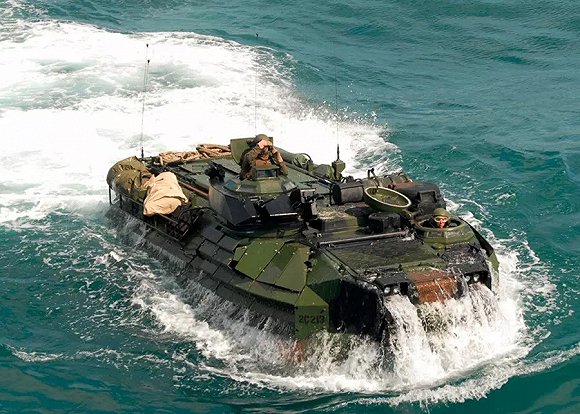 20世纪末以来,美军花巨资研制了滑行车体型的履带式先进两栖突击车AAAV,其设计的水上最大速度可达到46千米/时。可从行进中渡越江河湖海,而不受桥或船的限制。