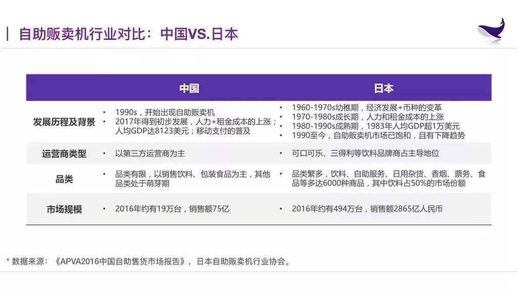 日本是全球自助贩卖机密度最大的国家,自助贩卖机行业已经发展得相当成熟。日本与国内的社会环境和地理环境有很大不同。
