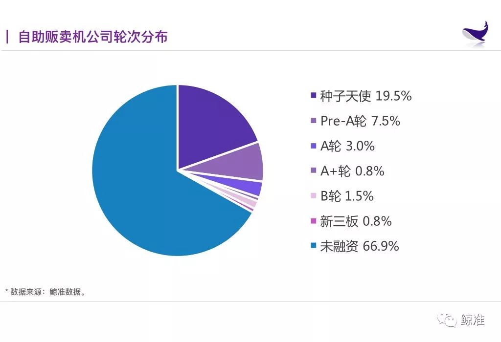 鲸准数据已收录133家创业型自助贩卖机企业,44家企业已获得过融资,其中87%的有融资的项目处于A轮前,说明自助贩卖机行业整体处于发展早期。