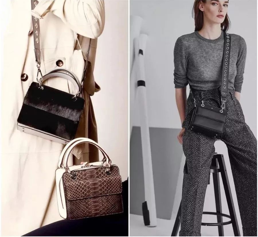 比如左图同一个包包,换不同面板就是个新包包;右图一个普通的通勤包Box换根铆钉肩带就有摇滚女孩的感觉了。