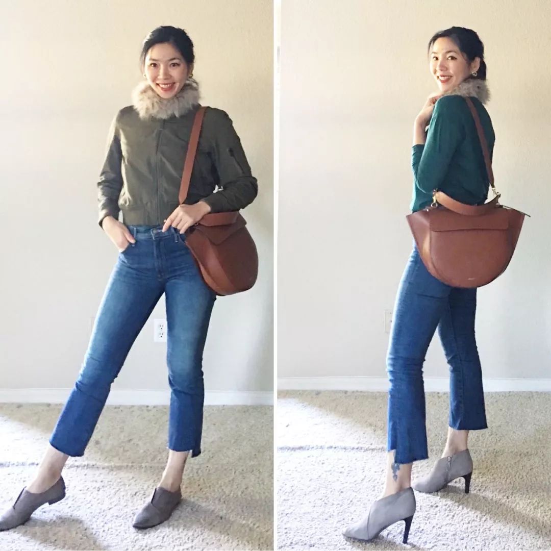 再放两个我喜欢的颜色吧。左边这个橘色配上墨绿色的衣服,简直让我挪不开眼睛!右边的军绿色也炒鸡百搭。