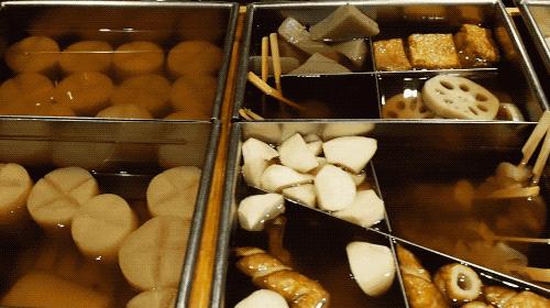 讲究的店家会花7~8个小时来熬一锅关东煮,火候控制在80~90℃之间,不能煮沸。期间在不同时段,放入不同煮物。