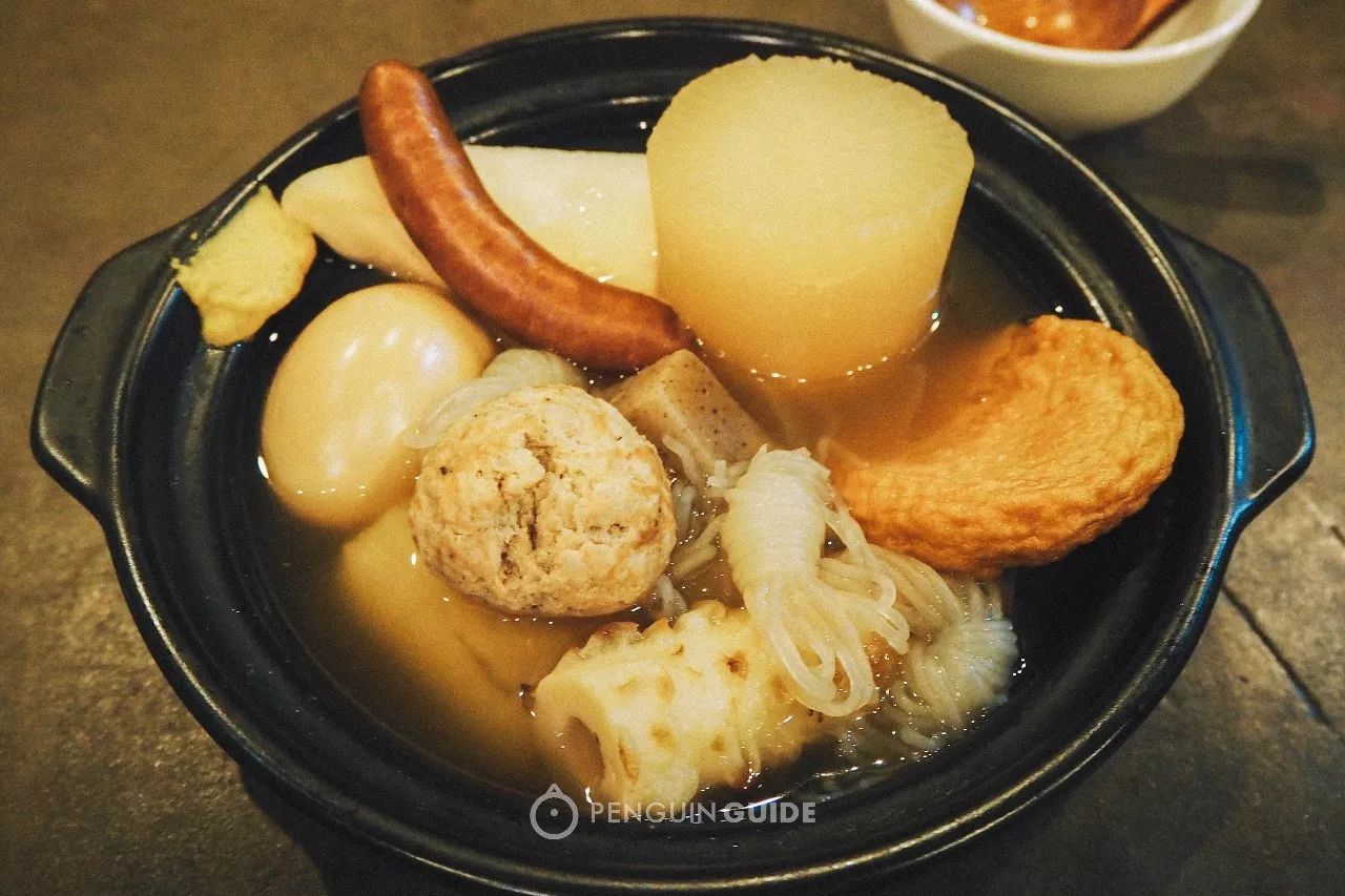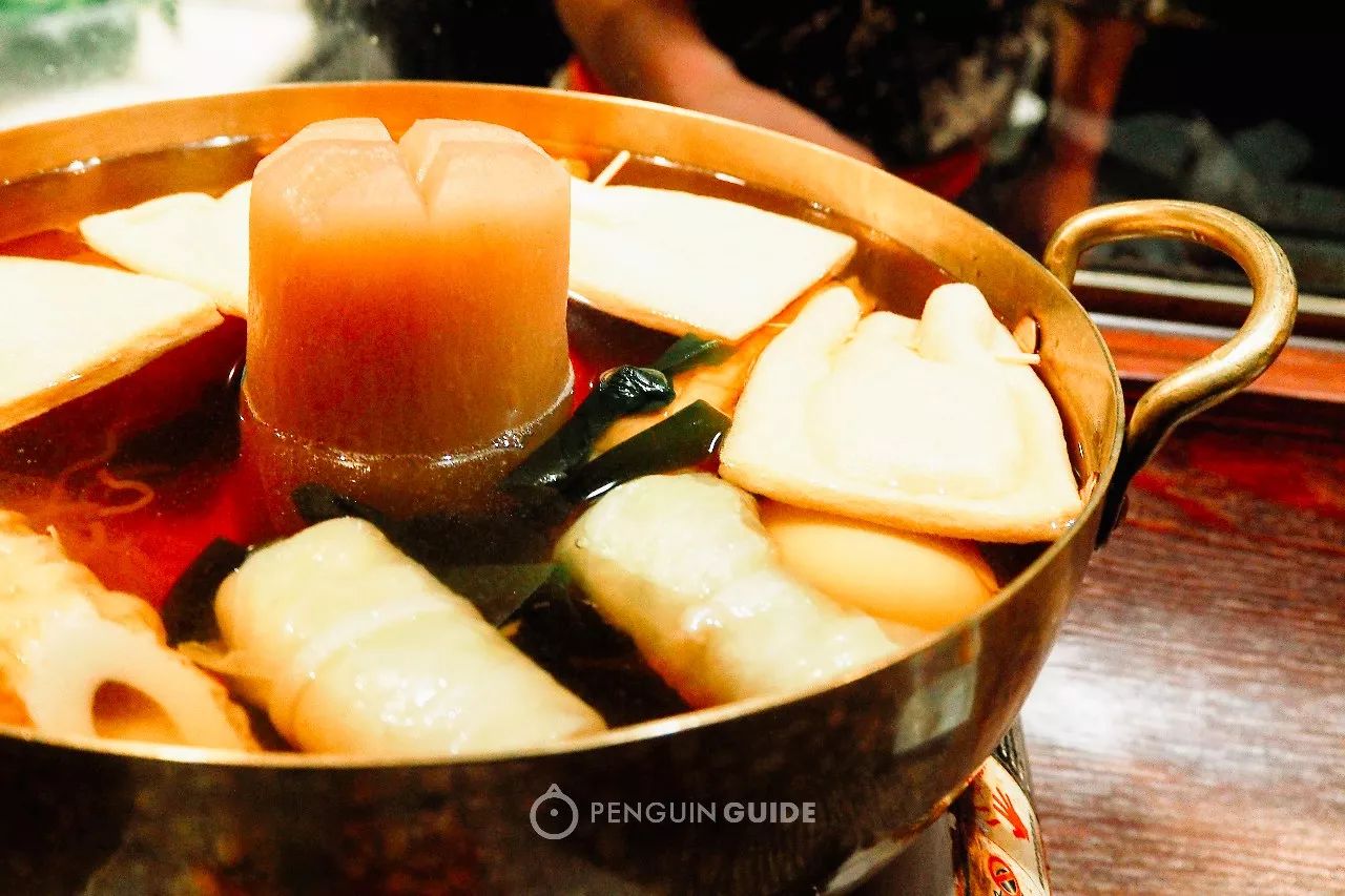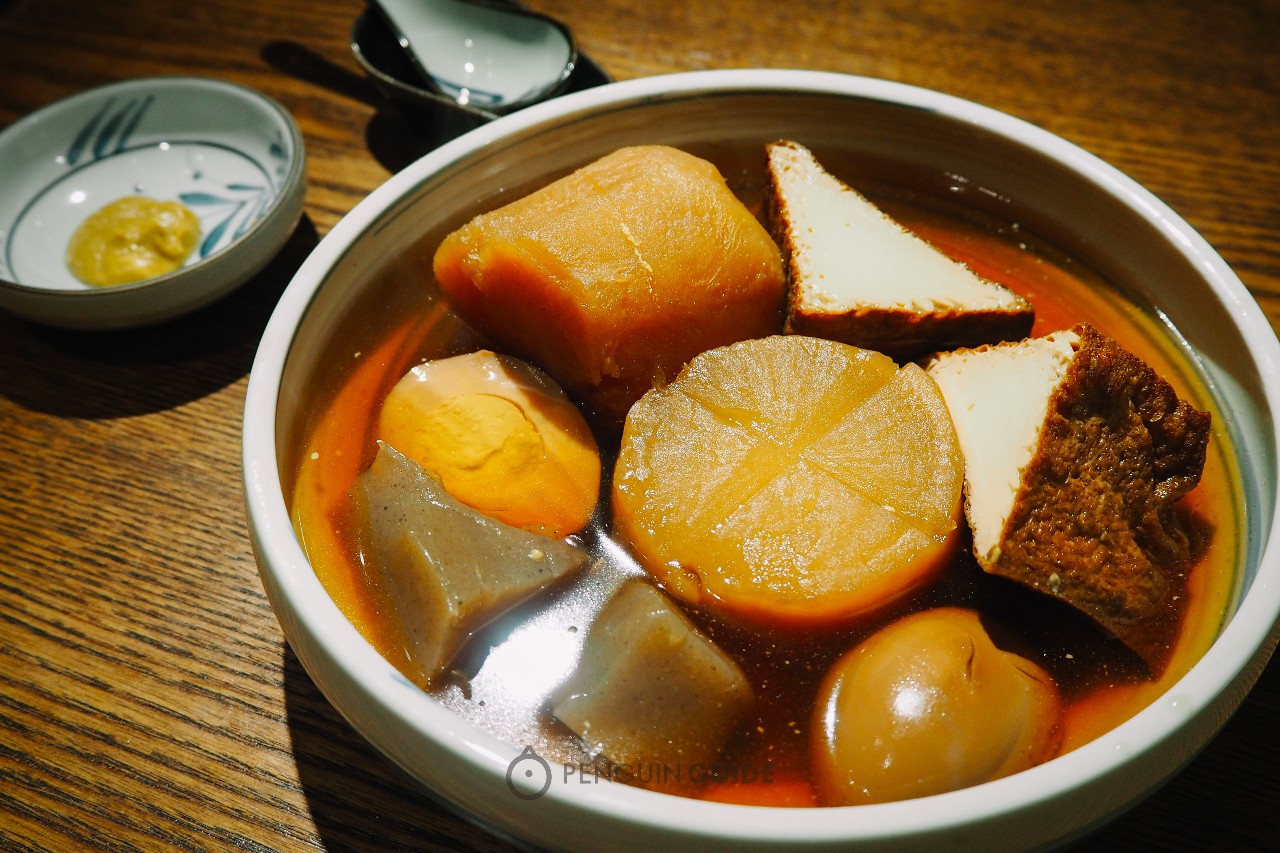 特别推荐自制炸牛蒡,牛蒡预煮晾干后,裹上自制的鱼浆和鱿鱼浆,先炸再煮。一口咬下去,柔韧鱼浆和脆落牛蒡交替登场,很是有趣。