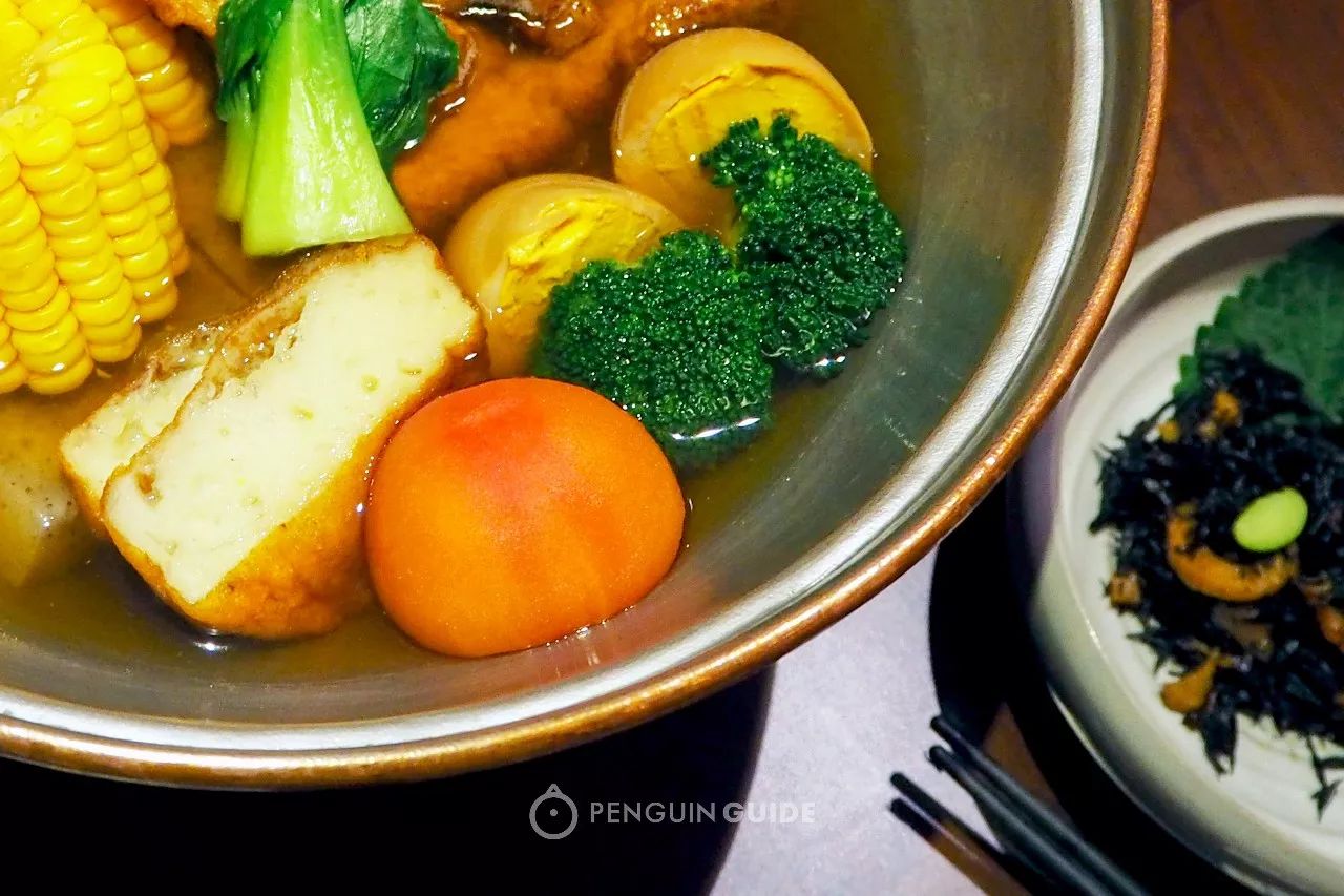 先尝一口出汁,不错!连喝几口舌头也不会发麻。再喝下去,有蔬菜的清甜,问过专门掌管关东煮的日本师傅,才知道秘诀是番茄。