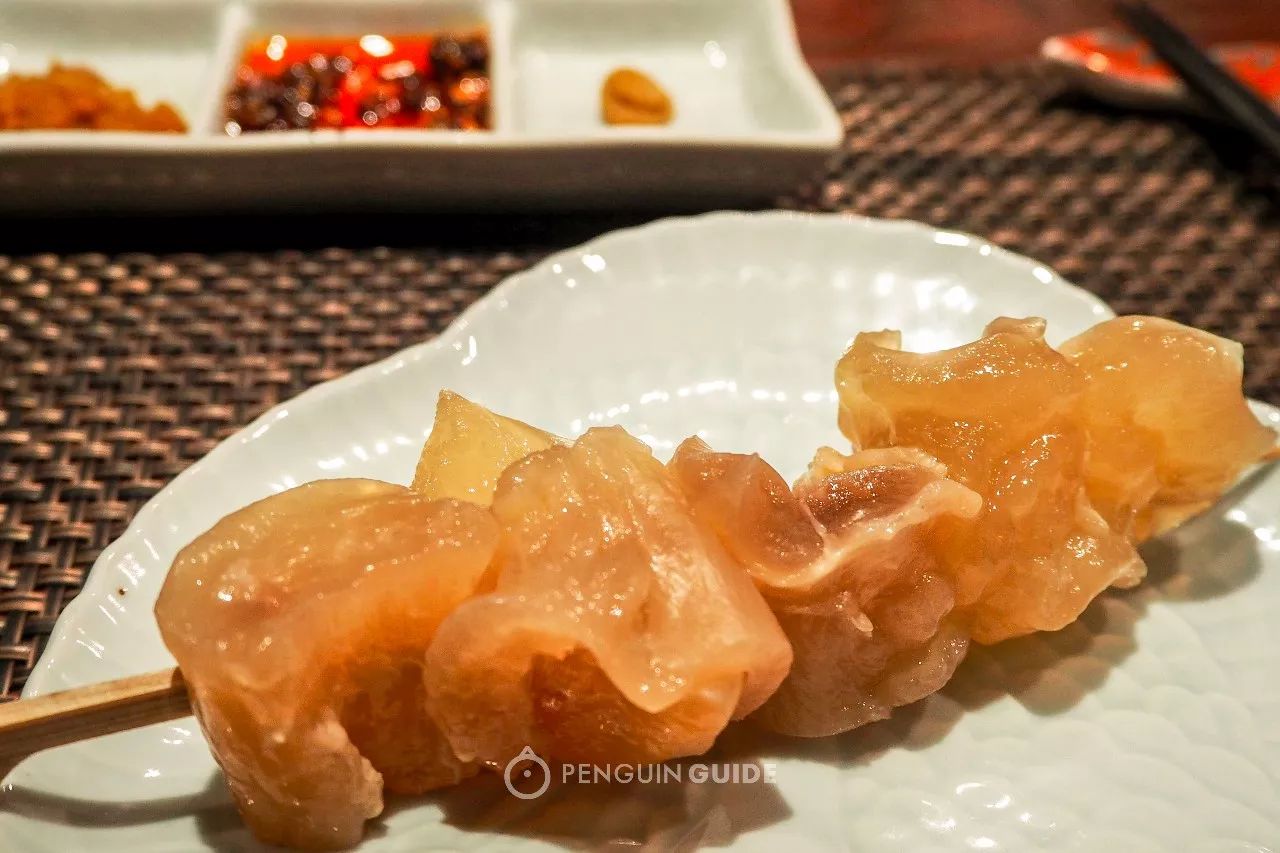牛筋非常大块,没有处理到大和屋那样入口即化,嚼劲十足也别有乐趣。搭配辣椒酱,吃完想拉住同伴的手转圈圈!