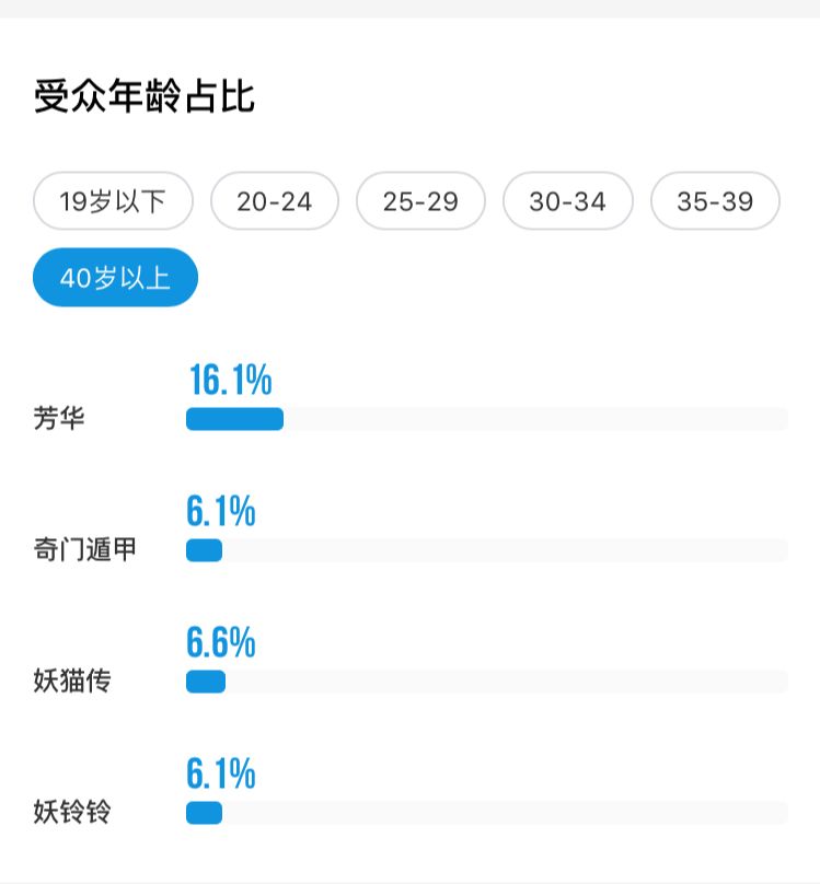 从淘票票专业版可以看出,《芳华》确实吸引到了更多40岁以上的观影人群,这一部分受众比例(16.1%)相比其他相近档期影片高出了10%左右。