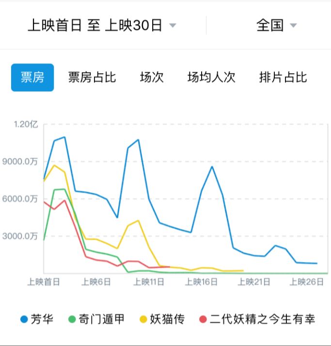 而影片随后更是连续两周实现票房逆跌,不仅工作日票房优于同档期以及随后上映的几部大片,周末单日票房也在1亿左右。这期间,《妖猫传》《机器之血》《妖铃铃》《二代妖精》等大片先后在12月22日和12月29日集中上映,但也只是在上映当天使《芳华》的排片大幅滑落,第二天便又再次回升。