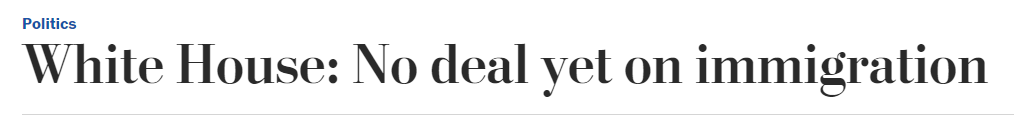 【美两党参议员就“梦想者”非法移民问题达成原则一致 】处理移民问题的6名参议员称,美两党参议员已经就解决年轻无证移民身份问题,边界安全和限制合法移民议题的协议“原则上达成了一致”,并寻求得到其他参议员和总统特朗普的支持。白宫新闻秘书桑德斯告诉记者,目前还没有移民等问题的协议,“但是,我们仍然认为我们可以做到。”