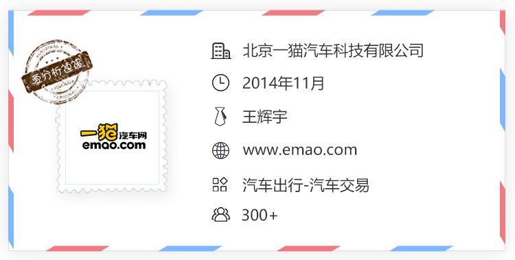 一猫汽车创始人王辉宇,拥有20年汽车行业连续创业经历。1994-2004年,第一个十年是经营4S店;2004-2014年,第二个十年是创办汽车咨询培训公司——北京森(恩)普咨询有限公司。2014年创办一猫汽车,愿景是成为三到六线城市最具实力的汽车电商。