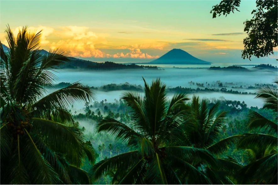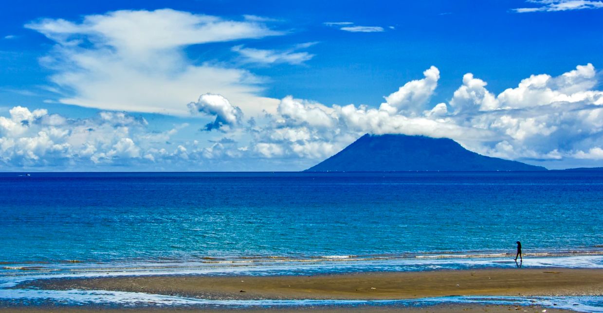 远远看去,罗肯火山犹如一座矗立在海中央的仙山,守护着美娜多世世代代的居民。就在罗肯火山旁边的,是马哈武火山,这是一座可攀登的休眠火山,可以近距离地观察到难得一见的火山口的迷人风光。