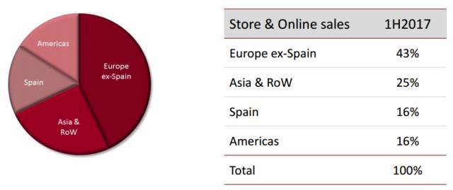 2017财年,Inditex集团在亚洲地区主要采取线下线上同步扩张的策略,前三季度集团在全球52个市场共新增212家门店,其中有90家位于亚洲地区。