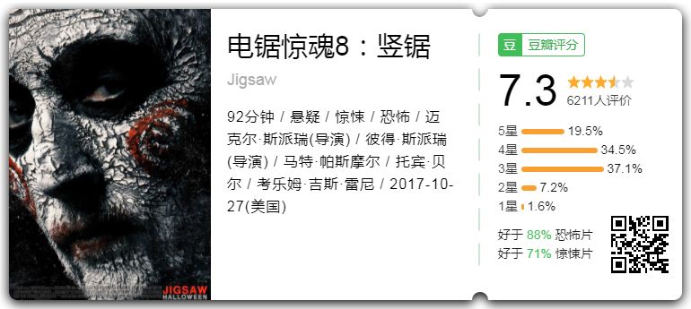 豆瓣上同样有着不错的分数7.3,好于88%的恐怖片。