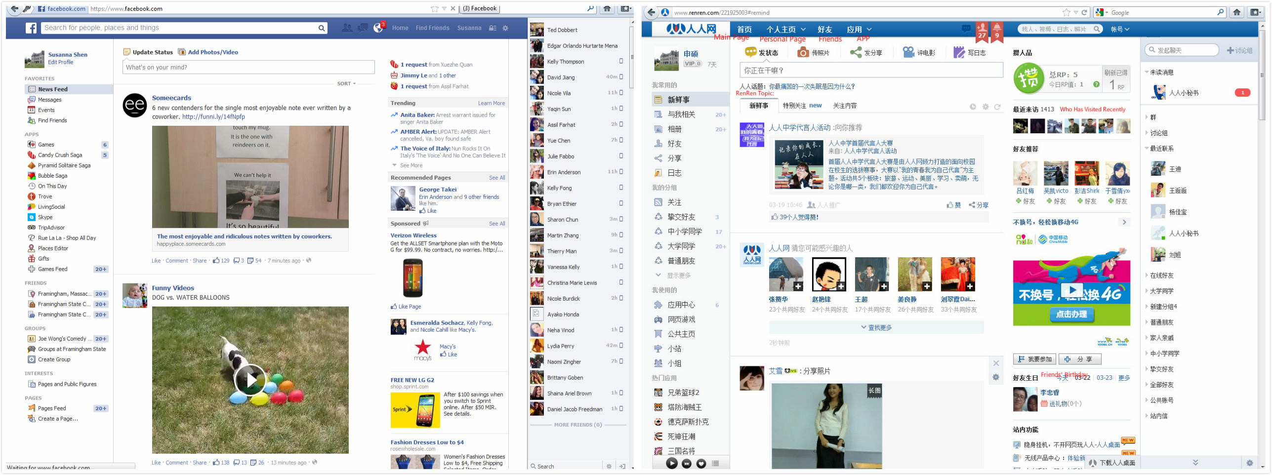 虽然双方针对的目标用户群体不太一样,但从运营模式上来看,人人网和开心网实在是太过相像。同样是实名制的熟人社交,就连主要功能都差不多。