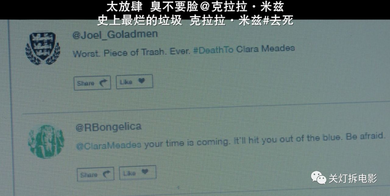 这给观众的错觉是,贝丝是因为生男友的气,所以将他屏蔽。