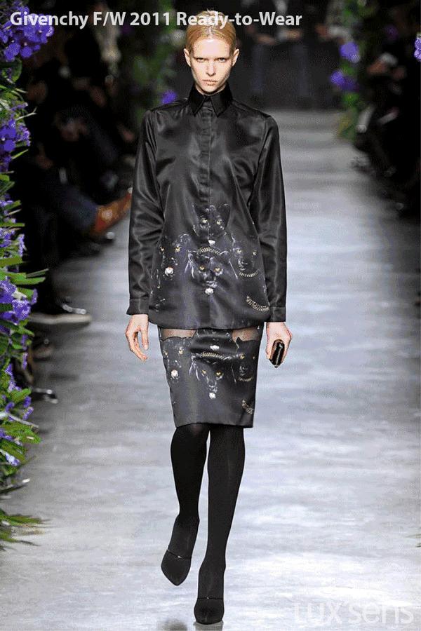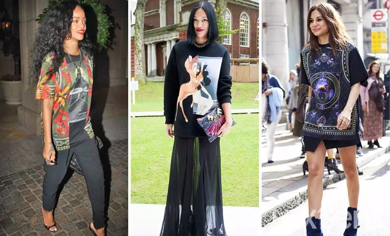 在2011年秋冬秀场上,一系列的罗威纳犬强势来袭,也成为 Givenchy 最受欢迎的单品,那一年的街拍几乎被狗头 Tee 霸屏。