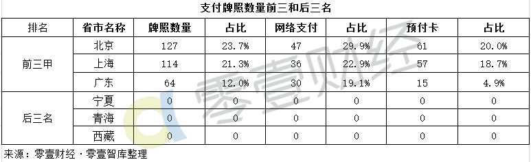 值得一提的是,仅京沪粤三省/市的支付牌照总和就为305张,超过其他省市支付牌照数量之和,占比达57%。