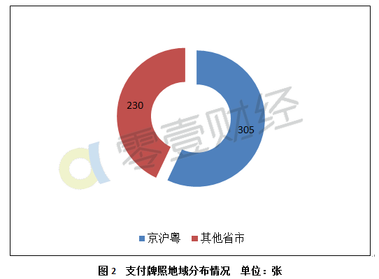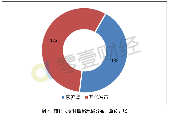 全国共有305张预付卡,其中京沪粤就有133张,占比44%。