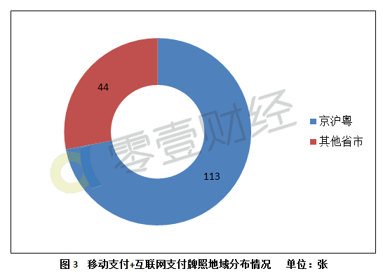 从支付牌照种类分布情况来看,网络支付也即移动电话支付和互联网支付牌照共有157张,其中京沪粤113张,占比超过70%。
