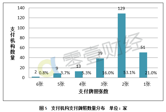 有两张支付牌照(业务类型)的支付机构共有129家,占比超过53%;仅有一张支付牌照的支付机构51家,占比高于21%。