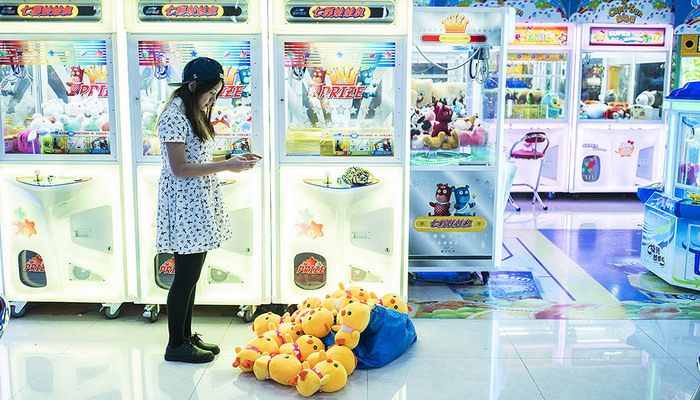 1. 坐在成堆的娃娃中,让很多女生羡慕不已,尤其是这些娃娃都是自己在娃娃机中抓回来的。在迷上抓娃娃机以前,雅离总认为这不过是一个骗人的游戏。但是她偶然发现自己可以在同一台机器上抓到两次娃娃,就想一探究竟“要是掌握了游戏背后的规律,成功率会有多高?”为了这个答案,雅离至今交了近4万元的“学费”。