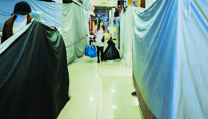 3. 抓娃娃大战结束后,雅离提着大号的塑料袋穿过打烊的店铺。