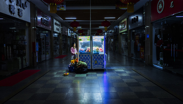 2. 只要闲来无事,雅离便会游走在各大商场的抓娃娃机前。要是手气不太差,每次都能抓满一大袋。尽管商场已经打烊了,但是雅离依然在与娃娃机对战。