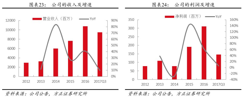 投资评级与估值 预计公司2017~2019年的收入分别为129/170/220亿元,归母净利润2.62/4.75/6.74亿元,增速为50%/81%/42%,对应PE为50/28/19倍,给予“推荐”评级。