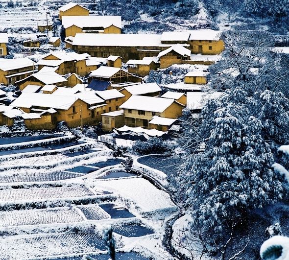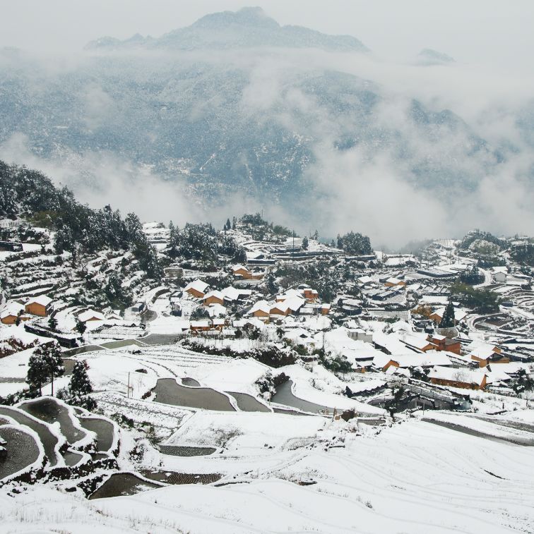 如果赶上一场纷纷扬扬的大雪,白雪覆盖层层田畔,整个云和梯田将变得银装素裹,美不胜收。或许冬日的梯田,没有夏季那般浓郁,不如秋季一样热烈,但却多了一丝克制、冷静而壮阔的美。