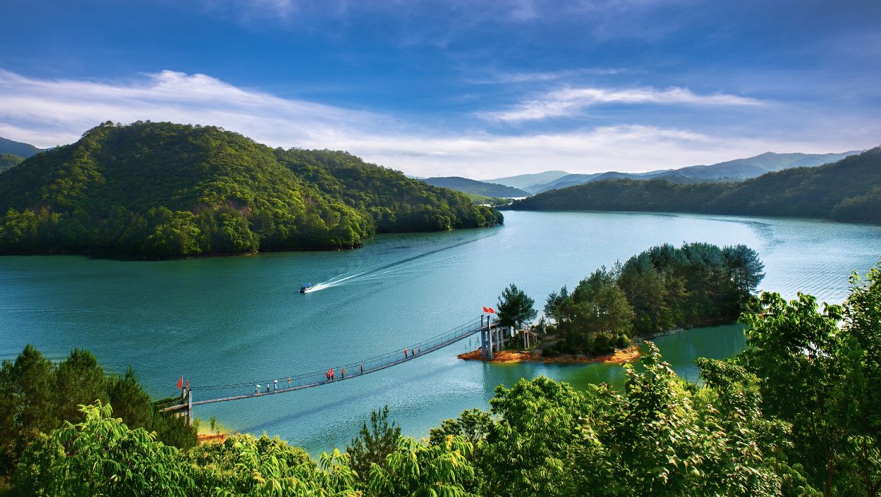 云和湖是浙江第二大人工湖,错落于仙霞岭-洞宫山交汇处,湖面辽阔,水色澄碧,山影明秀,仍保留着浙江瓯江的自然特色风光。