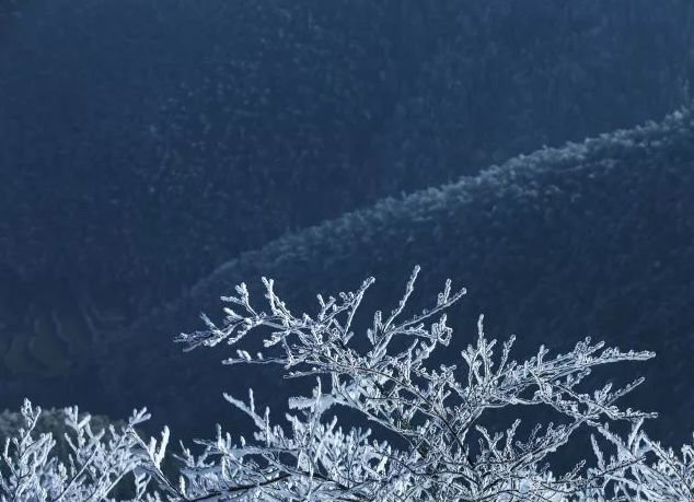 而到了冬天,白鹤尖的雾凇便开始现身,一望无际的雪树银花,粉妆玉砌,成为了云和这个冬天人气最旺的“小网红”。