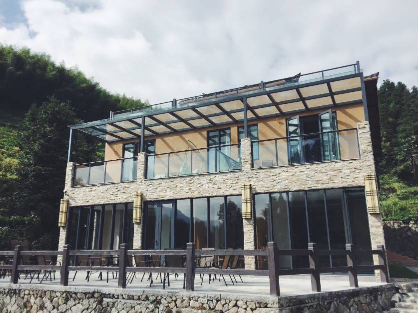隐匿在坑根石寨的云谷山房,拥有极简的线条感、大大的落地窗,在一群老房屋中脱颖而出,十分吸睛~民宿更是占据绝佳地理位置,站在宽敞的露台,远望是青翠群山,低头是娟娟流水,若遇上雨天,民宿沐雨腾云,宛若仙境。
