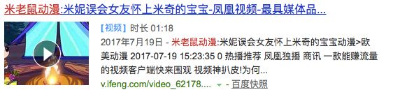 不止小猪佩奇,百度上输入“米老鼠动漫”也能搜到一堆乱七八糟的东西,什么米奇怀孕、出轨小三劈腿、狂喝血等小孩承受范围之外的成人情节,点开就能看:
