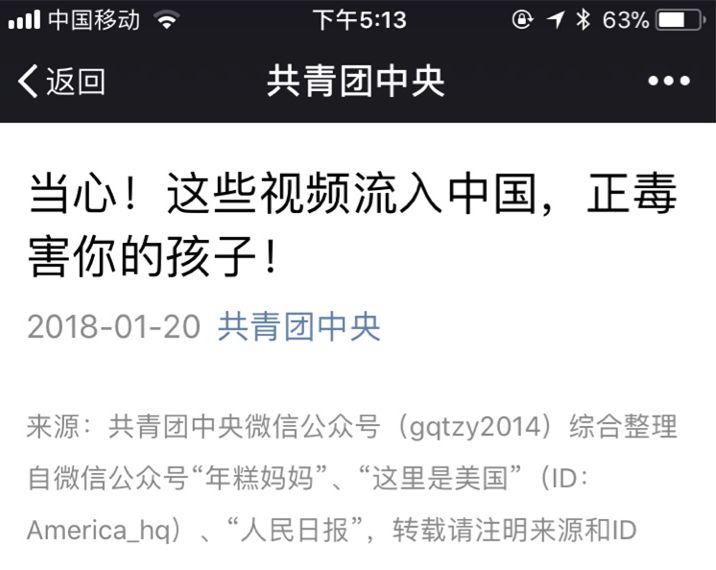 2016年,YouTube上突然集中爆发出大量儿童不宜的动画片,情节恐怖、色情又荒诞,BBC等主流媒体2017年3月直接发文批评: