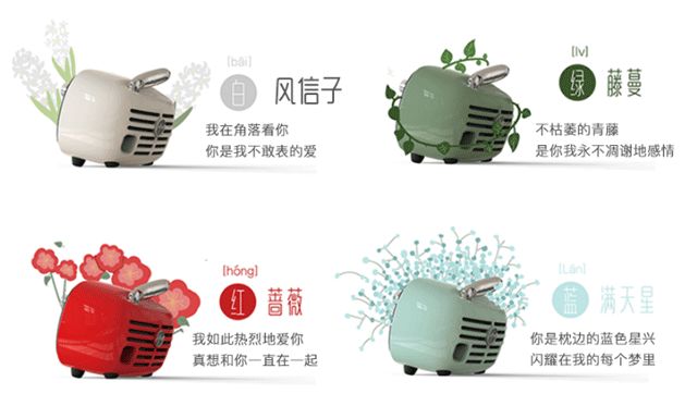 目前,共有白(风信子)、绿(藤蔓)、红(蔷薇)以及蓝(满天星)4款颜色可选,分别对应不同的花语,让它变得更有意义!